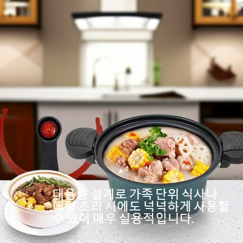 ● 대용량 설계로 가족 단위 식사나 대량 조리 시에도 넉넉하게 사용할 수 있어 매우 실용적입니다.